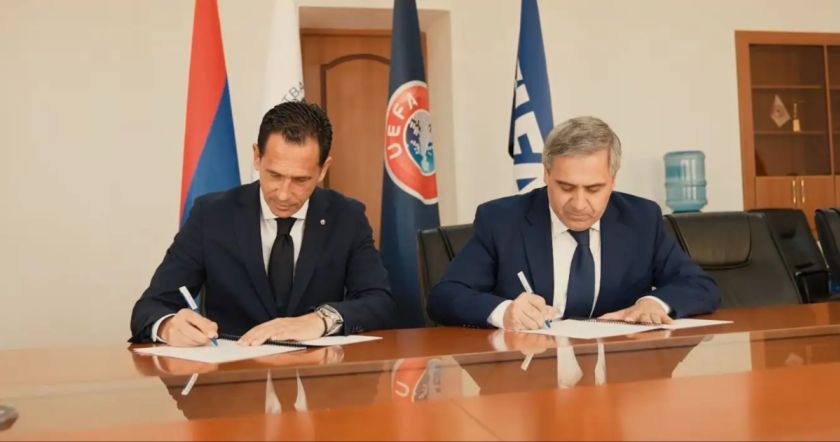 Նշվում է, որ Հայաստանի և Պորտուգալիայի ֆուտբոլի ֆեդերացիայի նախագահներ Արմեն Մելիքբեկյանն ու Պեդրո Պրոենսան ստորագրել են հայ-պորտուգալական ֆուտբոլի զարգացման հուշագիր: