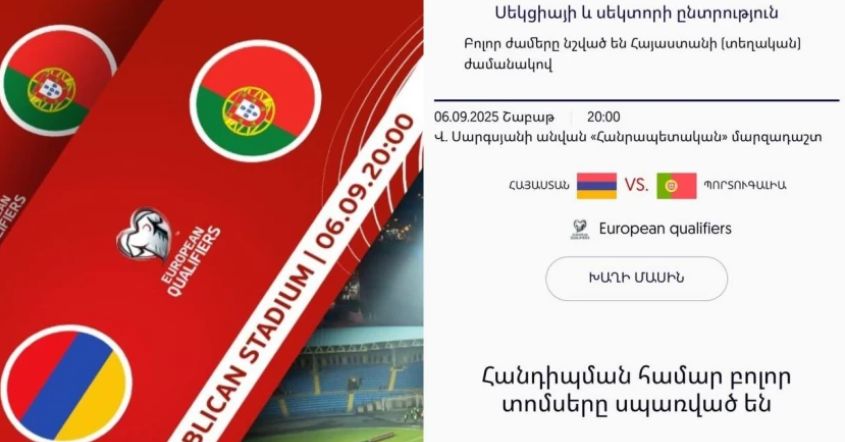 Հիշեցնենք՝ սեպտեմբերի 6-ին Վազգեն Սարգսյանի անվան «Հանրապետական» մարզադաշտում կայացավ ֆուտբոլի աշխարհի 2026 թվականի առաջնության որակավորման փուլի Հայաստան-Պորտուգալիա հանդիպումը: