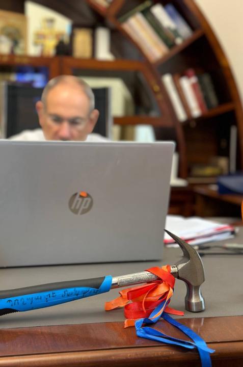 Ինչպես երևում է լուսանկարից, համակարգչի դիմաց մուրճ է՝ պողպատե մանդատ գրությամբ։