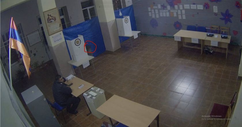 14/24 տեղամասային կենտրոնի քվեախցերի հետևում դեպի երկրորդ հարկ տանող աստիճաններ են, որտեղից տեսանելի են քվեախցերը խախտել քվեարկողի գաղտնիությունը: