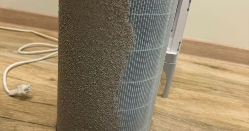 Նկարում օդ մաքրող սարքի ֆիլտրն է` մեկ ամիս օգտագործելուց հետո, աջ կողմը` արդեն մաքրված վիճակում։