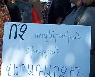 Ակցիայի մասնակիցներից մի քանիսը մոտեցել են նախագահական նստավայրի դարպասներին և հանգիստ կանգնել են, սակայն ոստիկանները սկսել են հրել ու քաշքշել նրանց: Ակտիվիստները սկսել են վանկարկել «Պուտինի ստրուկներ», «Ռուսաստան հեռացիր», «Սերժիկ հեռացիր», «ռուսի ստրուկ»: