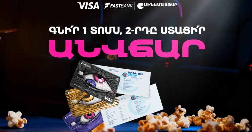Ֆասթ Բանկի հաճախորդները Սինեմա Սթար (Cinemа Star) կինոթատրոններում Visa ԱկնՔարտով տոմս գնելու դեպքում նույն ցուցադրության երկրորդ տոմսը կստանան անվճար։ Առաջարկը գործում է միայն Դալմա և Ռիո մոլերի կինոթատրոններում ցանկացած հրապարակային ցուցադրության ֆիլմի կամ մուլտֆիլմի համար։