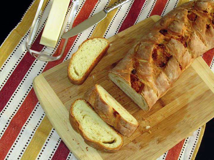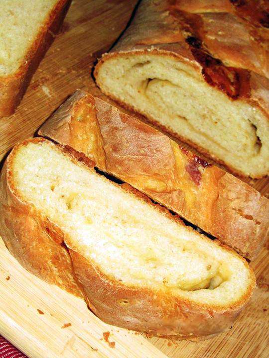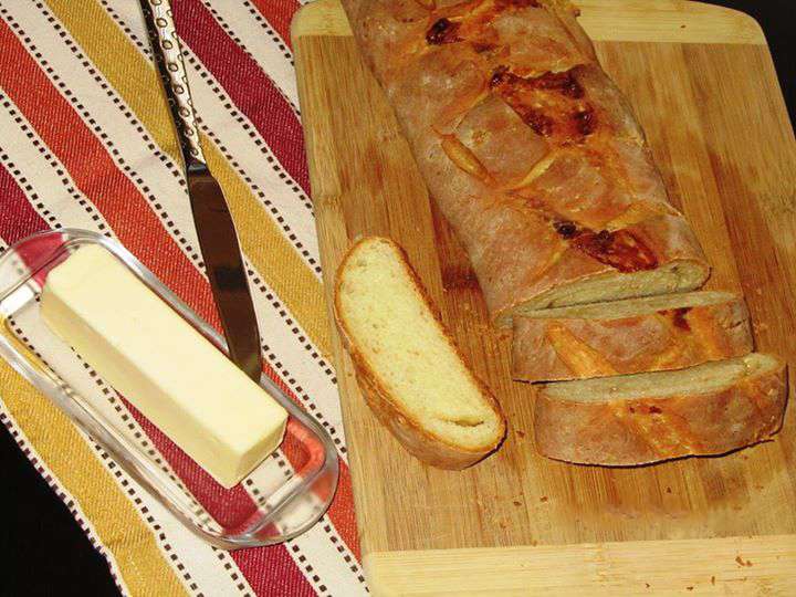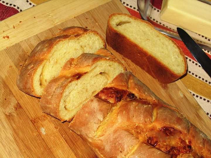 Հսունացած խմորը տրորել, ձեռքով բացել, խմորի վրա տարածել 100 գ քերած պինդ պանիր (պարմեզան, լոռի, չեդեր...), ռուլետի նման փաթաթել, թողնել տաք տեղում մոտ 30 րոպե, որ բարձրանա: Սուր դանակով վրան կտրվածքներ անել և թխել նախապես 200 (400F) աստիճան միացրած ջեռոցում մոտ 40 րոպե կամ մինչև կարմրելը: Շատ համեղ է գինով: Թխե՛ք և վայելե՛ք: Բարի ախորժակ!!!! Հարգանքներով` Նինա Մինասյան