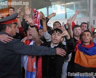 Ֆուտբոլիստները ժպտալով, ոստիկանների ուղեկցությամբ տեղ զբաղեցրին ավտոբուսում և շարժվեցին դեպի հյուրանոց: