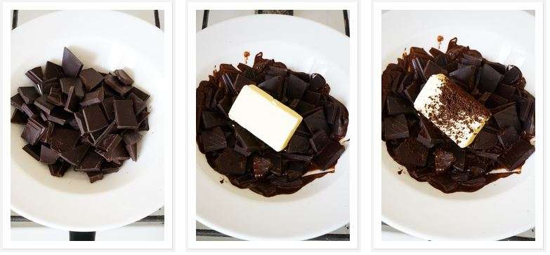 Գազօջախի վրա ջուր ենք եռացնում և այդ ամանի վրա հալեցնում ենք շոկոլադն ու կարագը