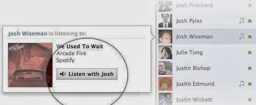 Այժմ Facebook-ն առաջարկում է նոր ծառայություն, որի շնորհիվ Դուք, տեսնելով, որ Ձեր ընկերներից մեկը որևէ երգ է լսում, կարող եք սեղմել Listen With կոճակը և միանալով նրան միաժամանակ լսել այդ երգը նրա հետ: