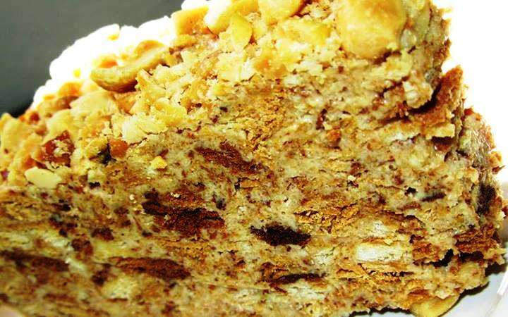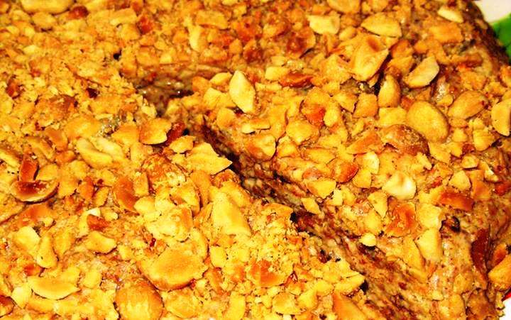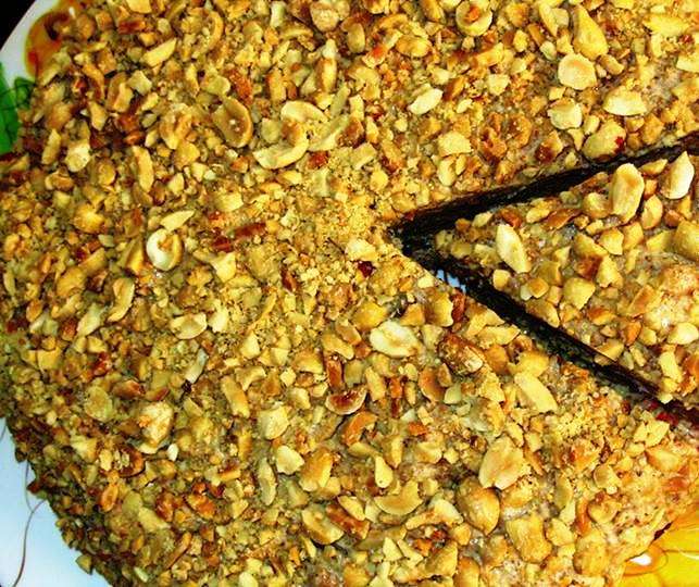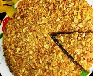 Կրեմն ու խմորը միացնել (կրեմը միանգամից ամբողջությամբ չլցնել, որ հնարավոր լինի կլոր տորթի տեսք տալ. մի փոքր կրեմ ավելանում է): Ափսեի մեջ կլոր տորթի տեսք տալ, ձևավորել բոված գետնանուշով: Լավ սառեցնել և մատուցել: Բարի ախորժակ!!!! Հարգանքներով՝ Նինա Մինասյան