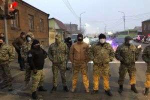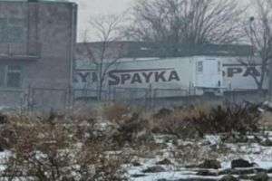 Возле мецаморского морга припаркованы мобильные холодильники компании “Спайка”, в которых хранятся останки военнослужащих