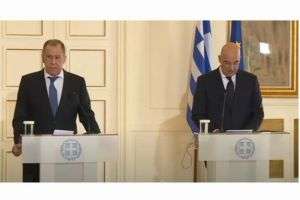 Министр иностранных дел Греции Никос Дендиас и министр иностранных дел России Сергей Лавров обсудили усилия международного сообщества по достижению мира в зоне нагорно-карабахского конфликта