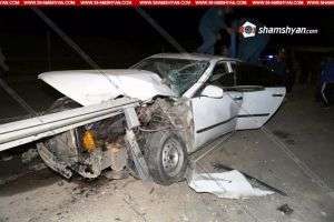 Автомобиль напоролся на металлическое ограждение на ночной трассе в Армении (Фото)