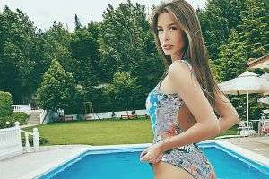 Кети Топурия показала фигуру в купальнике во время модной съемки