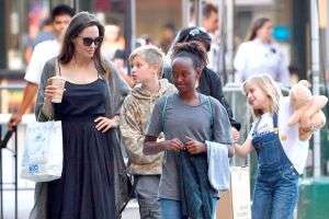 Девочки в сборе: Анджелина Джоли с тремя дочерями на шопинге в Лос-Анджелесе (Фото)