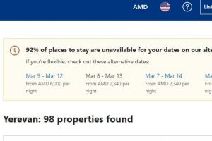 В Ереване практически не осталось свободных номеров в гостиницах - 92% занято на ближайшие дни