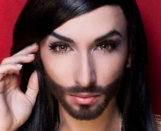 На фото - конкурсант на Евровидении-2014 от Австрии певец-трансвестит Кончита Вурст