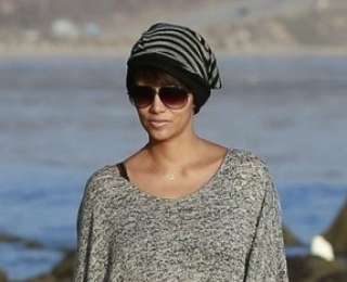 Халле Берри только недавно стала мамой, а еще вышла замуж и вот теперь наслаждается отдыхом. И делает это очень стильно, надо сказать. Фотографы застали звезду во время прогулки по пляжу. На ней была трикотажная серая туника поверх черного платья с асимметричным подолом. Образ она дополнила лишь полосатой объемной шапкой и темными солнечными очками.