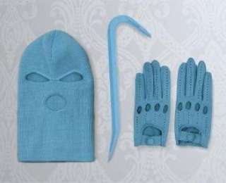 Комплект выдержан в нежно-голубом цвете. Невзирая на элегантное и ироничное воплощение идеи, производителей обвинили в пропаганде насилия.