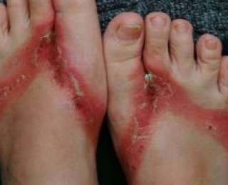 Результат появился на фотографиях в блоге американки Керри Стилс. Она сфотографировала свои ноги после того, как некоторое время поносила шлёпанцы: на ступнях появились сыпь и химические ожоги, точно повторяющие очертания лямок обуви.
