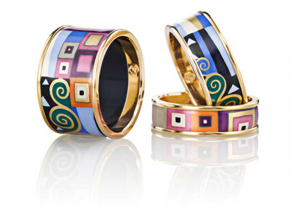 Родителем этой тенденции можно смело считать компанию Freywille, линейка товаров которой состоит из красивых украшений не из драгоценных металлов, с ручными рисунками ярких цветов. Многие молодожены стали заходить в магазины этого бренда и спрашивать ювелирные украшения специально для свадеб, но с такой же стилистикой. В компании были не готовы к таким запросам, но зато оказались готовы многие другие ювелирные мастерские и фабрики. Свадебные и обручальные кольца теперь не только одного монотонного цвета металла, но могут быть с рисунком в стиле «Гжель», «Хохлома» или все что угодно на вкус молодоженов.