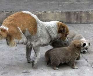 Посмотрите как она с любовью прижимается к своим щенкам, защищая их от внешнего мира.