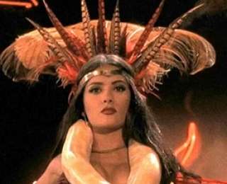Сальма Хайек в фильме от «Заката до рассвета». Танец знойной мексиканки с удавом на шее даже спустя много лет вызывает приступы тахикардии у мужчин и заставляет нервно сглатывать их девушек, с завистью смотрящих на изгибы актрисы.