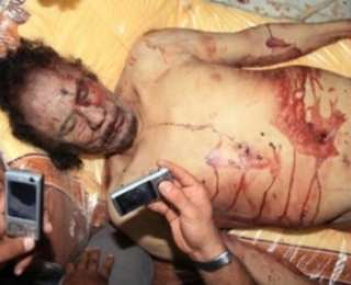 На минутной записи, подлинность которой пока установить не удалось, по всей видимости запечатлены события 20 октября 2011 года, когда повстанческими войсками был схвачен и убит Каддафи: толпа молодых людей радостно кричит «ура» рядом с автомобилем, в котором лежит окровавленное тело человека, напоминающего Каддафи.
