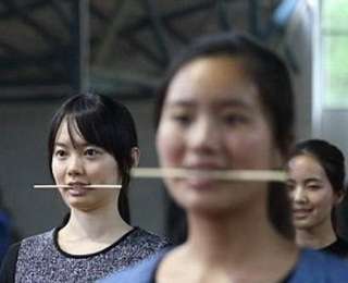 Китайские подростки и молодые люди сейчас упорно практикуются в умении улыбаться. Для этого они используют традиционный метод закусывания палочек для еды.
