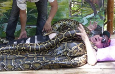 "Мой друг посоветовал мне сделать это, сказав что это может вылечить мою руку. На самом деле чувство скольжения питонов по телу было приятно, если не считать их высунутых языков. Когда все четыре змеи были на мне, их общий вес составил около 250 кг, поэтому было невозможно встать. Словом, данная процедура не для слабонервных", - рассказывает о своем опыте Ян.