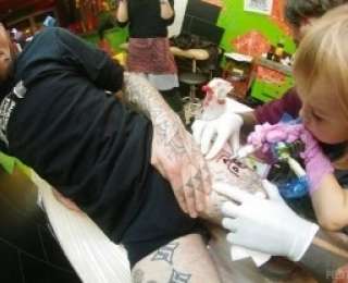 Это маленький ребенок является самым молодым художником татуировки на планете. Вы бы позволить ей набить вам тату?