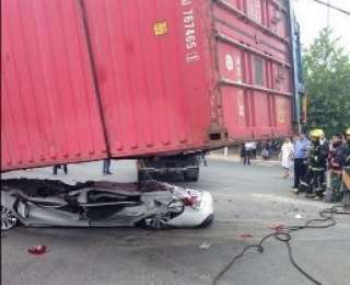 На днях в одном провинциальном китайском городке с грузовика свалился контейнер. Прямо на проезжавшую рядом машину, расплющив ее в лепешку.
