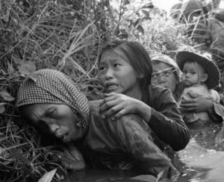 Женщины и дети укрываются в грязном канале от интенсивного огня Вьетконговцев. Bao Trai, примерно в 20 км к западу от Сайгона, Вьетнам 1 января 1966 года.