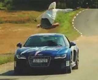 Год назад Алассан Исса Гобитака перепрыгнул спорткар Lamborghini, летящий на него со скоростью 130 км/ч. Никлас Штрандбратен усложнил задачу, выбрав Audi R8, который на 10 см выше "итальянца" и несется быстрее на 20 км/ч.