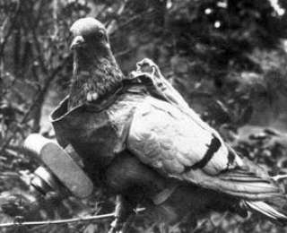 Годы Первой Мировой войны. На почтового голубя крепилась миниатюрная автоматическая фотокамера, делавшая снимки через определенные интервалы.