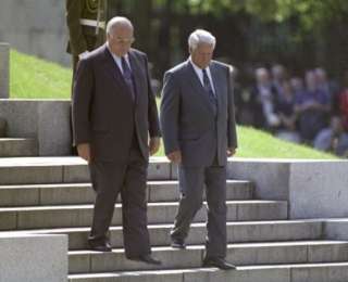 После этого, выступая на митинге, Ельцин потряс аудиторию заявлением, что «в войне России с Германией не было ни победителей, ни побеждённых». Не прошло и нескольких минут, как президента чудом удержали от падения с лестницы в Трептов-парке.