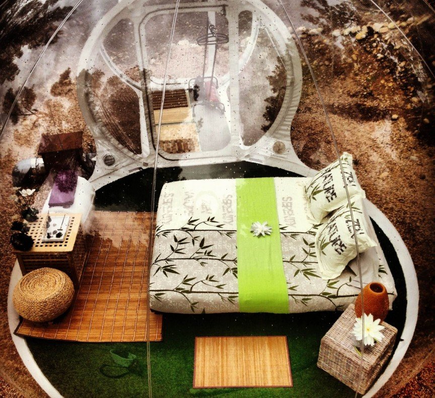 Пузыри-номера приблизительно 4 метра в диаметре, а некоторые дают больше уединения, будучи лишь полупрозрачными. Каждый из них сделан из перерабатываемых материалов, а тихий нагнетатель воздуха сохраняет помещение надутым. Каждый пузырь также обладает особым стилем, «Zen» является самым популярным.