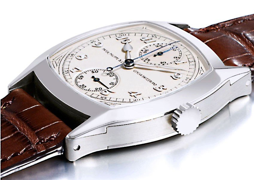 Компания Патек Филипп, основанная в 1851 году, была открыта польским часовщиком Антонием Патеком (Antoni Patek) в сотрудничестве с французским часовщиком Адрианом Филиппе (Adrien Philippe). С тех пор компания занимается производством часов высокого качества. Глядя на эти часы 1928 года выпуска вы можете задаться вопросом о том, почему настолько «заурядно» выглядящие часы могут стоить таких денег. Во-первых, это Патек Филипп, что автоматически гарантирует отменное качество сборки. Во-вторых, именно эти часы в форме подушки являются единственными сохранившимися часами этого модельного ряда, сделанными из белого золота от Патек Филипп. Кроме того, у них брегетные цифры и вертикально расположенные регистры. Согласно историческим записям, эти часы были созданы специально для анонимного покупателя за год до того, как наступила Великая депрессия (Great Depression).