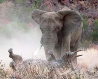 Носорог слишком близко подошел к слону, который охранял своих самок и поплатился...