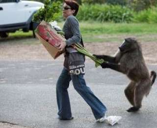 В Южной Африке процветает необычное «преступное сообщество», состоящее из бабуинов. За прошедший год жители Кейптауна неоднократно сталкивались с этими наглыми разбойниками, которые пытаются украсть или отобрать еду. Дело в том, что город постоянно расширяется, поэтому огромные и всеядные бабуины заходят на территорию человека. Обычно обезьяны совершают налеты на дома, машины и мусорные баки. С 1999 года эти дикие животные находятся под охраной государства, поэтому сейчас более 500 бабуинов беспрепятственно бродят по улицам Кейптауна.