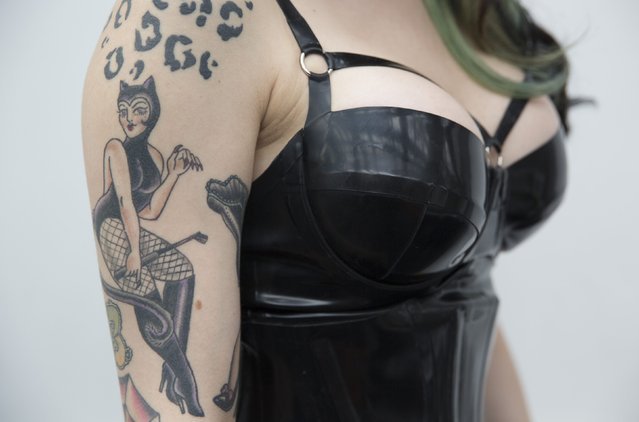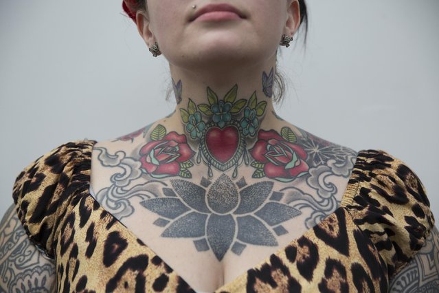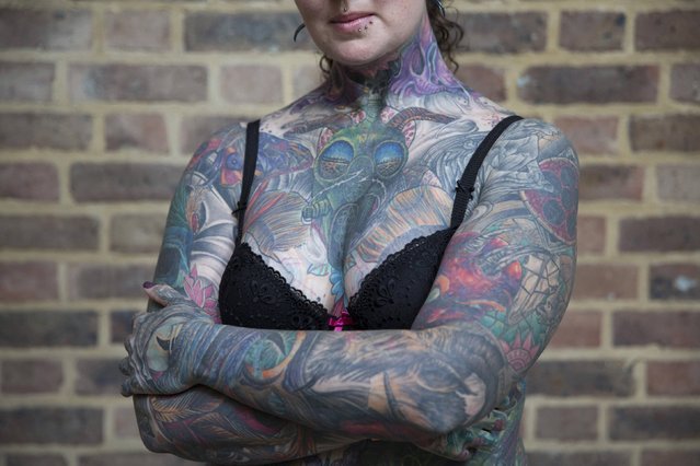Виктория Кларк (Victoria Clarke) позирует с татуировками во время 10-го международного слёта, посвящённого татуировкам (10th International Tattoo Convention) в Лондоне 27 сентября 2014 года. (Фотография Нила Холла (Neil Hall)/Рейтер)