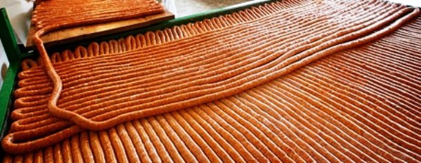 Согласно Книге мировых рекордов Гиннесса, самая большая колбаса в мире была изготовлена Джей Джей Транфилдом (JJ Tranfield) по заказу компании «Asda Stores Plc», в Шеффилде (Sheffield), Великобритания в октябре 2000 года. Учитывая тот факт, что её длина составляла 59 143 километра, она была практически равна ширине Род-Айленда (Rhode Island).