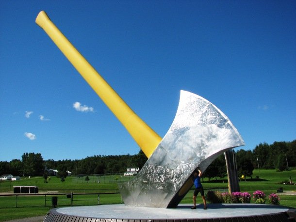 Высота самого крупного в мире топора, расположенного в городе Накавик (Nackawic), провинция Нью-Брансуик (New Brunswick), Канада, составляет 14,9 метра и весит он более 55 тонн. Он был заказан, спроектирован и построен в 1991 году компанией в Вудстоке (Woodstock). Этот гигантский топор символизирует важность лесной промышленности в регионе.