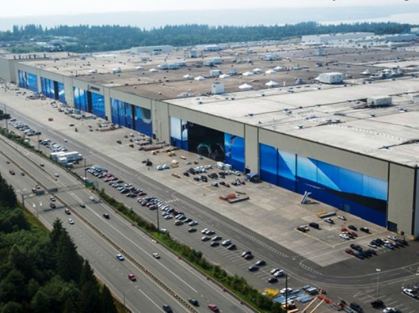 Самым крупным по объёму зданием в мире является Эвереттская Фабрика Боинга (Boeing Everett Factory), расположенная в городе Эверетт (Everett), штат Вашингтон. Объём здания равен 13 385 378 кубическим метрам. Оно занимает площадь в 399 480 квадратных метров. Это здание было изначально построено для строительства самолётов марки Боинг.