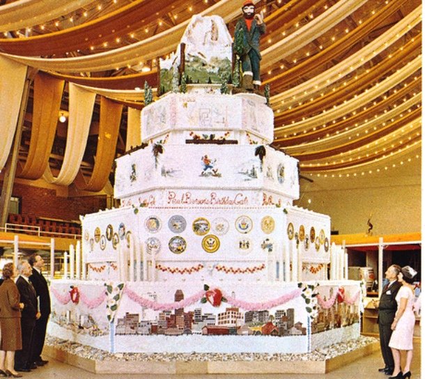 Самый большой в мире торт ко дню рождения, сделанный в 1962 году для Всемирной выставке в Сиэтле (Seattle World’s Fair) компанией голландских пекарей Ван де Камп (Van De Kamp´s Holland Dutch Bakers), весил 11339 килограммов 808,33 грамма и его высота равнялась 7,01 метра. Список ингредиентов включал в себя 4762 килограмма 719,50 граммов муки, 3175 килограммов 146,33 грамма изюма и 997 килограммов 903,13 грамма ореха пекан.