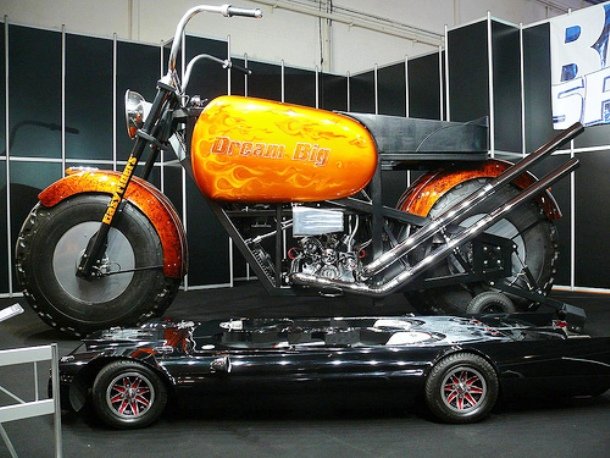 Самый крупный мотоцикл в мире был построен Грегори Данхэмом (Gregory Dunham) в 2005 году. Он был назван «Мечтайте Шире». Высота мотоцикла составляет 3,35 метра, длина 6,09 метров, а вес равен 2948 килограммам и 350,17 граммам. На постройку этого монструозного мотоцикла у него ушло 3 года. Несмотря на его гигантские размеры, мотоцикл полностью функционален и готов к поездкам.