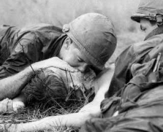 Во время войны во Вьетнаме, к северу от Сайгона, примерно в 80 километрах, находилась зона, которой американцы дали название "War Zone D". Именно там были сосредоточены огромные силы вьетконговцев. Здесь постоянно устраивались засады и происходили перестрелки, которые легко могли превратиться в многодневный бой на фоне густых джунглей и каучуковых плантациях. 17 июня 1967 года, медик Джеймс Э. Каллахан находился в составе батальона пехотинцев, в самом эпицентре боевых действий в этой зоне. Бой продолжался в течение трех часов, и к его завершению, 31 американский солдат был убит и более 100 были ранены. Фотограф Анри Юэ сделал фотографию, когда Каллахан пытался спасти умирающего солдата. Безумие и отчаяние на лице Каллахэна стало зеркальной противоположностью того, как воспринимали войну во Вьетнаме американцы на родном континенте.