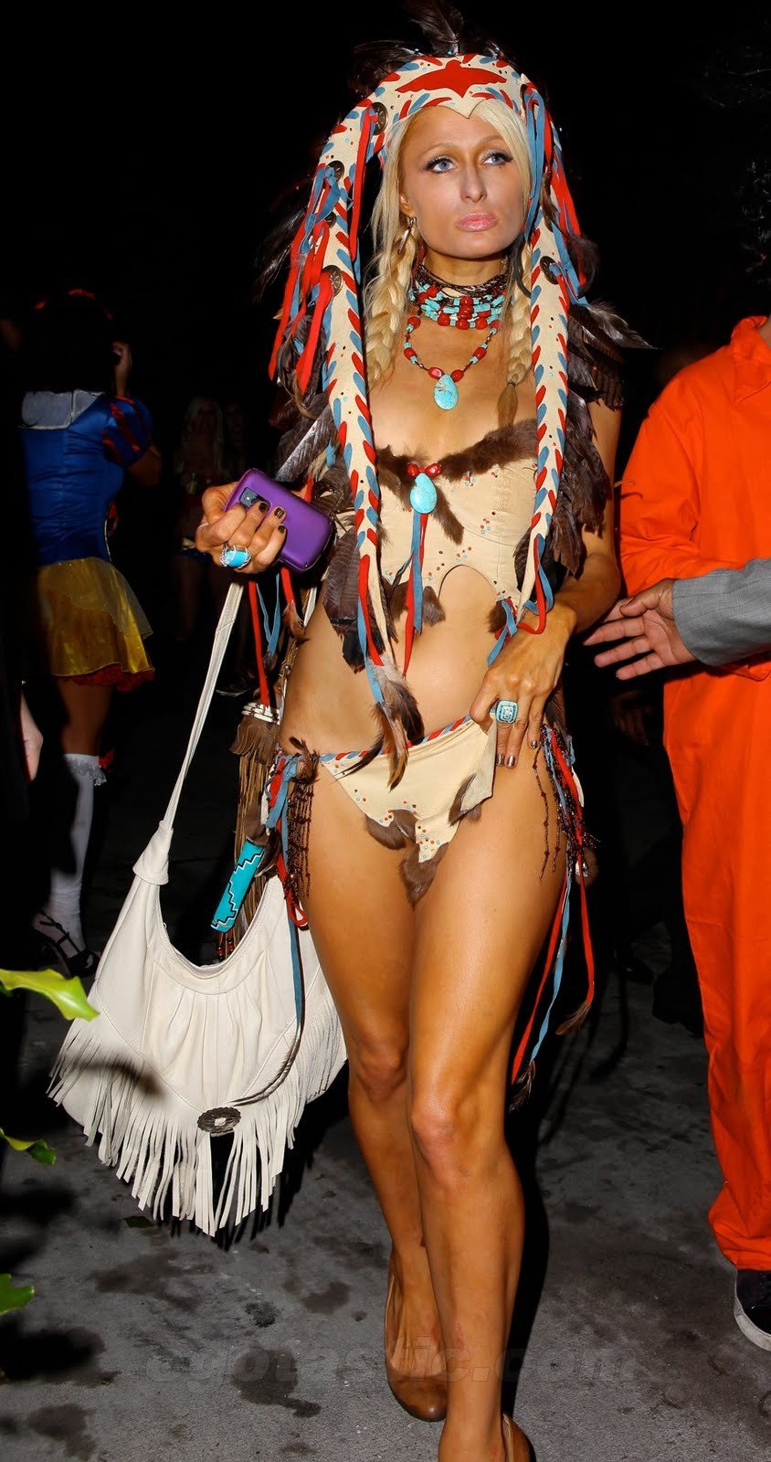 В мире не существует какого-либо костюма, который бы безмозглые 21-летние девушки не смогли бы превратить в «сексуальную» версию. Некоторые считают, что Хэллоуин просто является отличным оправданием для того, чтобы пойти в бар, надев на себя как можно меньше. Такой случай точно не могла пропустить сама модель для подражания и звезда попоек в баре. В 2010 году Хилтон ухватилась за Хэллоуин как за возможность вырядиться в сексуальную версию стереотипного костюма вождя индейцев. В костюме было всё: головной убор, косички и перья. Кроме того, на ней было бюстье, короткая юбка и глубокий вырез – вуаля, идеальный костюм на Хэллоуин готов!
