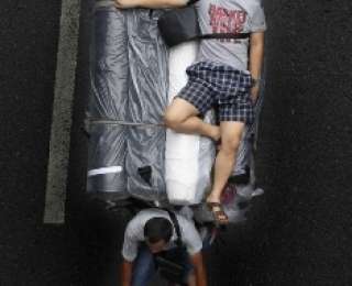 Аэрофотоснимки жизни на трициклах в Китайском Гуанчжоу.
