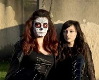 Участник костюмированного фестиваль готов в Уитби в костюме смерти.