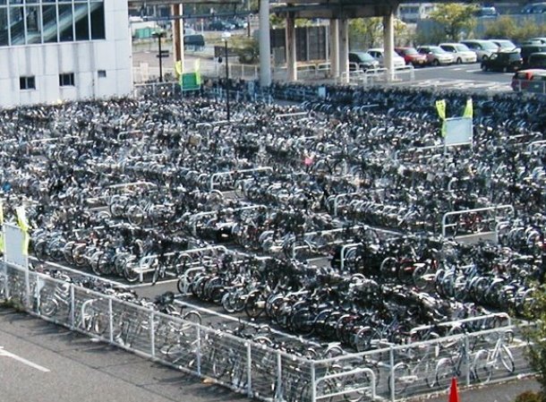 Мы уже упоминали, насколько густонаселённой является Япония и сколько проблем с парковкой и вождением они испытывают. Именно этот факт делает велосипеды самым удобным транспортным средством. В результате страна полна таких мест как на фотографии, в таких местах как железнодорожные станции, торговые центры и другие места массового скопления людей.