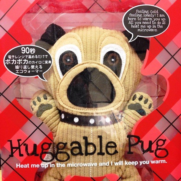 Супер зонт, возможно, спасёт вас от дождя, но что вы будете делать, если замёрзнете? Забудьте одеяла, Япония предлагает вам этого очаровательного мопса, который вас согреет. Поставьте его в микроволновку, разогрейте и вуаля! Теперь у вас есть тёплая игрушка.